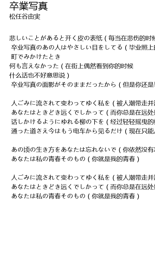 | 卒业写真の面影がそのままだったから(但是你还是毕业照上的那个样子没变) | |