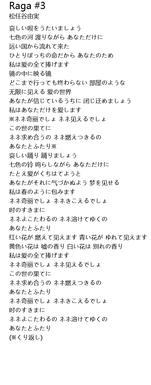 | [03:03.123] | ネネよこたわるの ネネ溶けてゆくの |