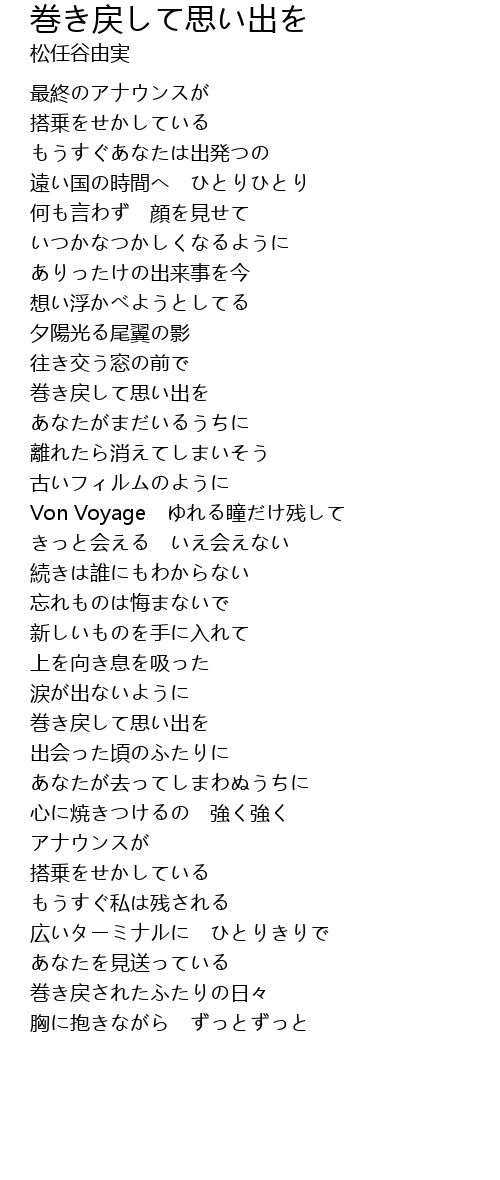 | [02:03.177] | Von Voyage ゆれる瞳だけ残して |