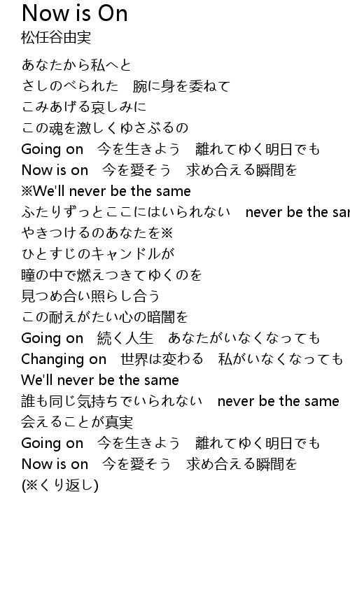 | [02:46.272] | Now is on 今を愛そう 求め合える瞬間を |