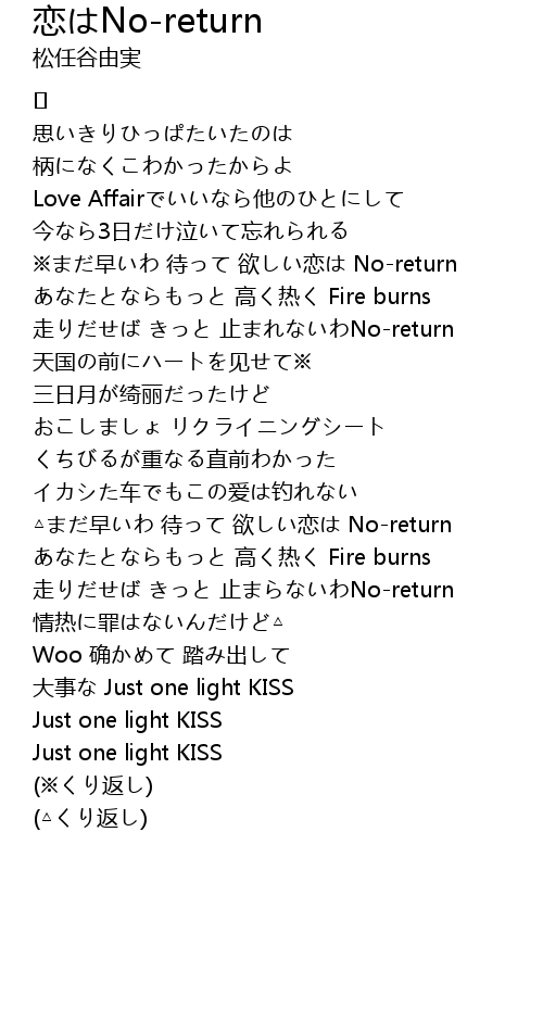 | △まだ早いわ 待って 欲しい恋は No-return | |