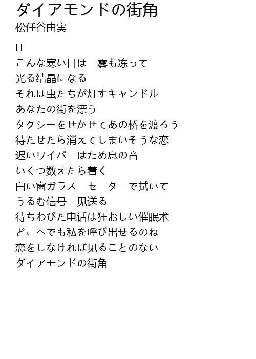| Song | ダイアモンドの街角 |