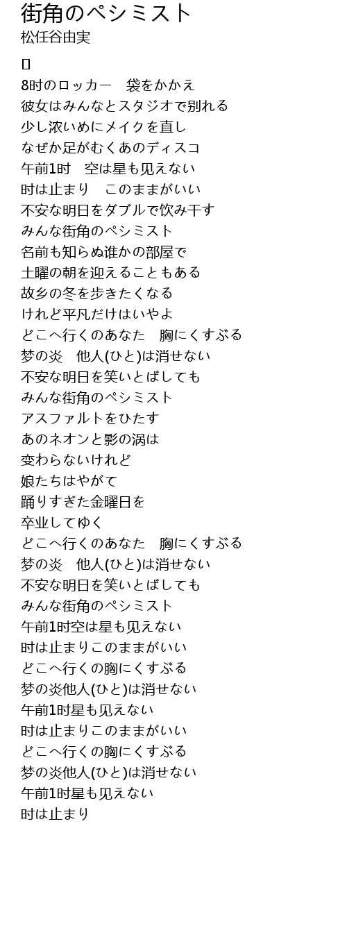 | Song | 街角のペシミスト |