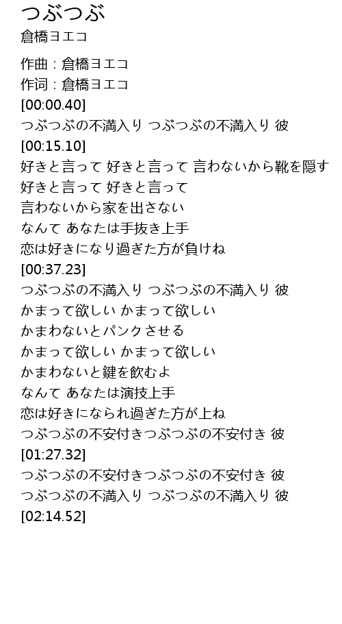 [01:44.74] つぶつぶの不満入り つぶつぶの不満入り 彼