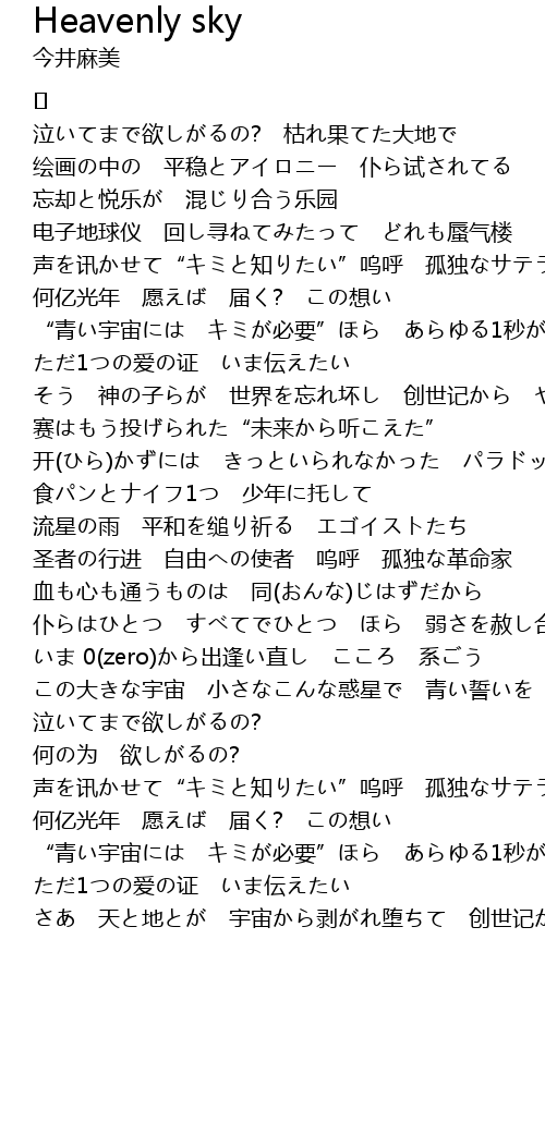 | さあ 天と地とが 宇宙から剥がれ堕ちて 创世记から やり直すその前に |