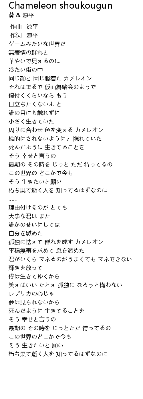 | [00:29.87] | 同じ顔と 同じ服着た カメレオン |