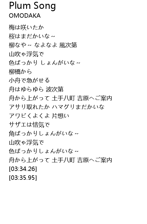 | [03:21.61] | 舟から上がって 土手八町 吉原へご案内 |