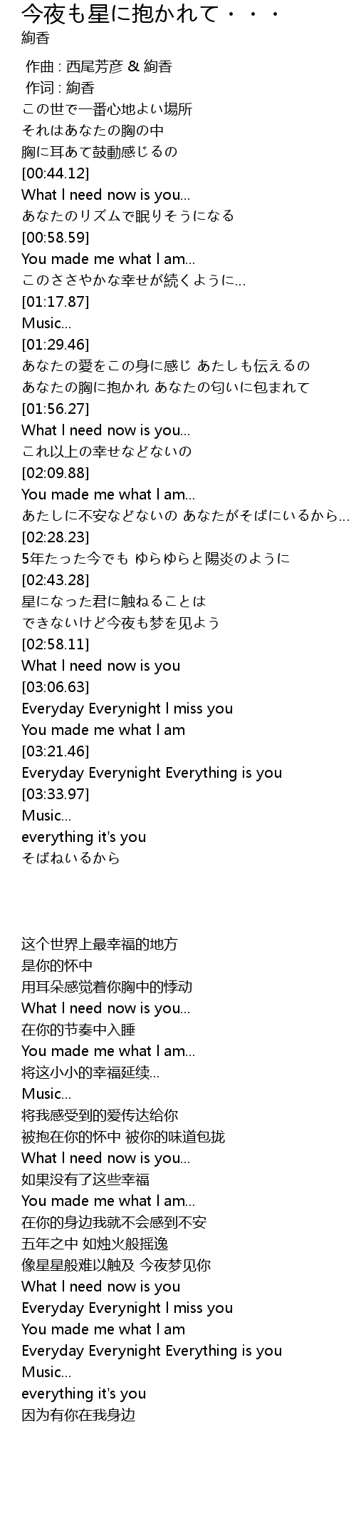 | [01:44.34] | あなたの胸に抱かれ あなたの匂いに包まれて |