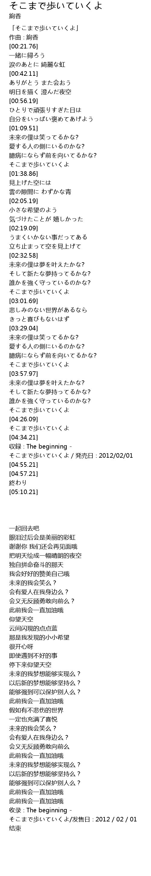 | [04:50.21] | 収録∶The beginning - そこまで歩いていくよ/発売日∶2012/02/01 |