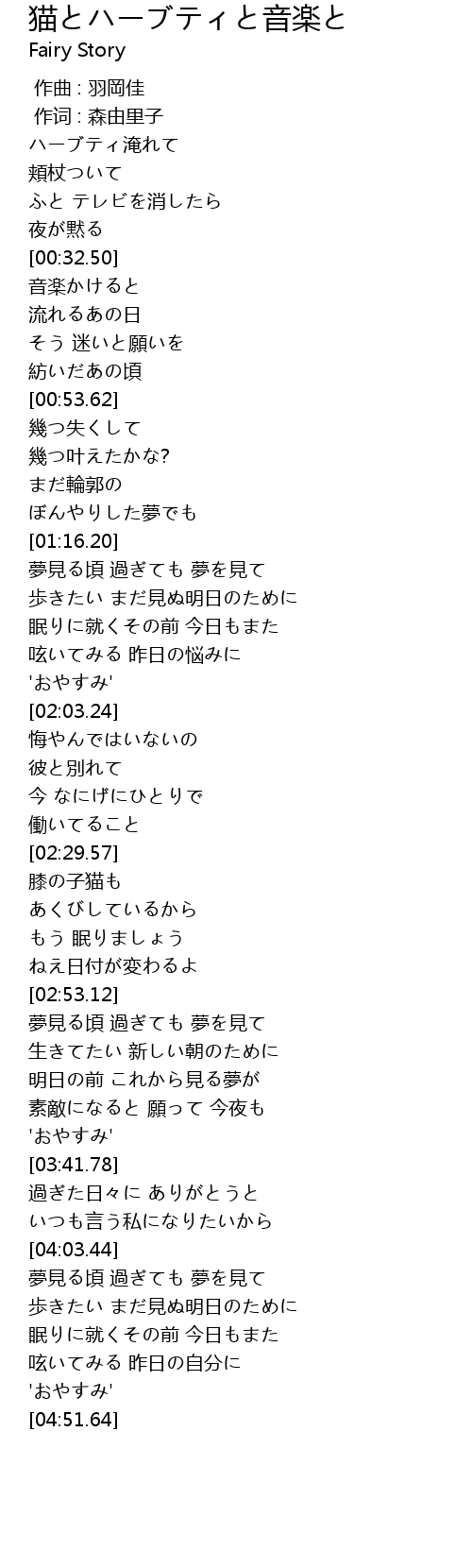 | [00:00.00] | 作曲 : 羽岡佳 |