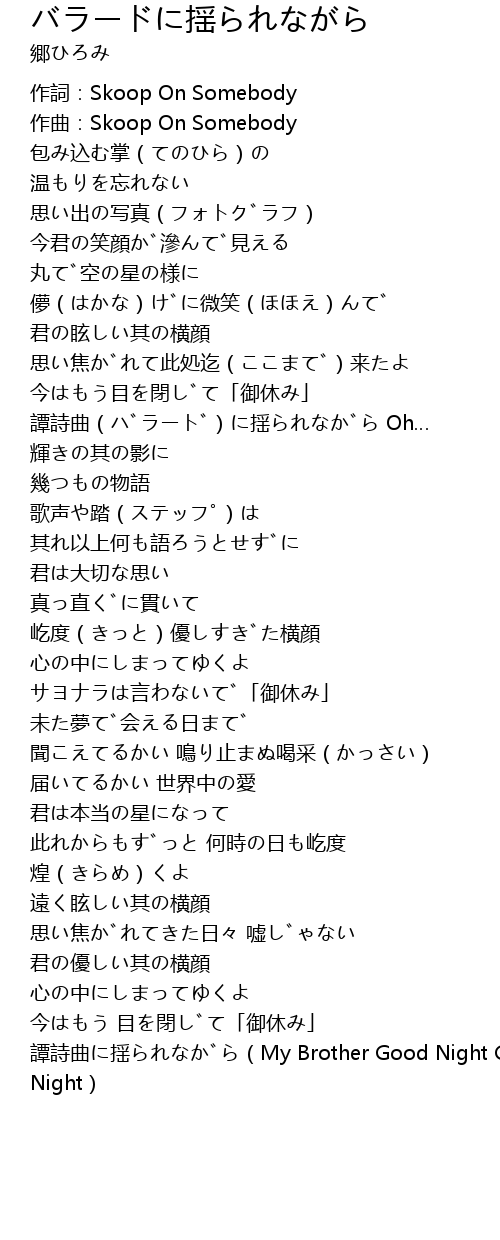 | [03:58.964] | 譚詩曲に揺られながら(My Brother Good Night Good Night) |
