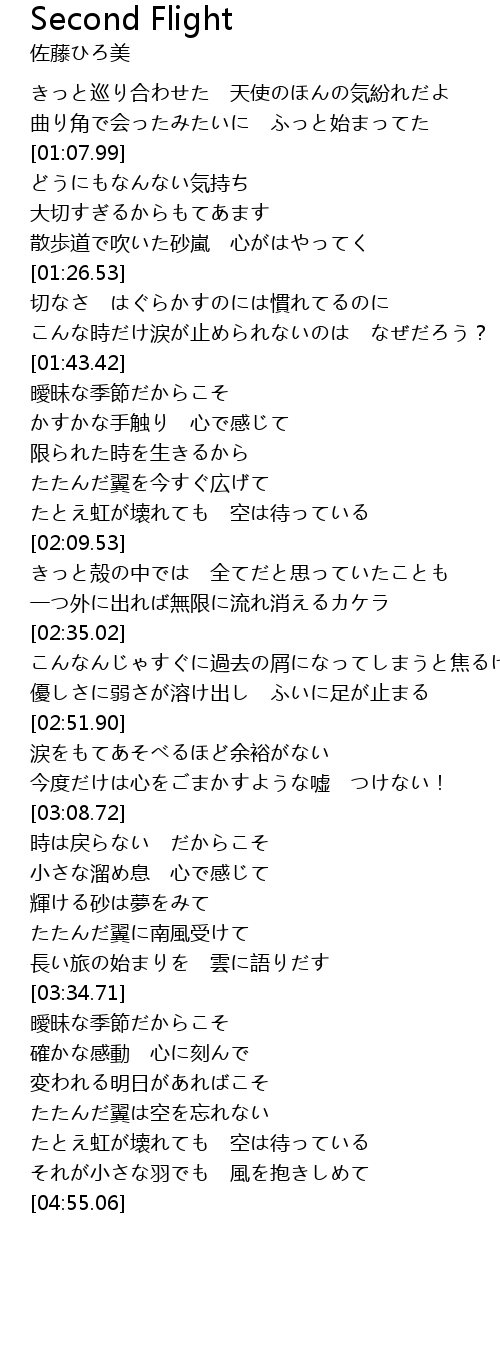 | [02:00.99] | たとえ虹が壊れても 空は待っている |