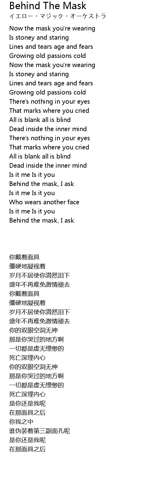 Behind the mask, I ask |