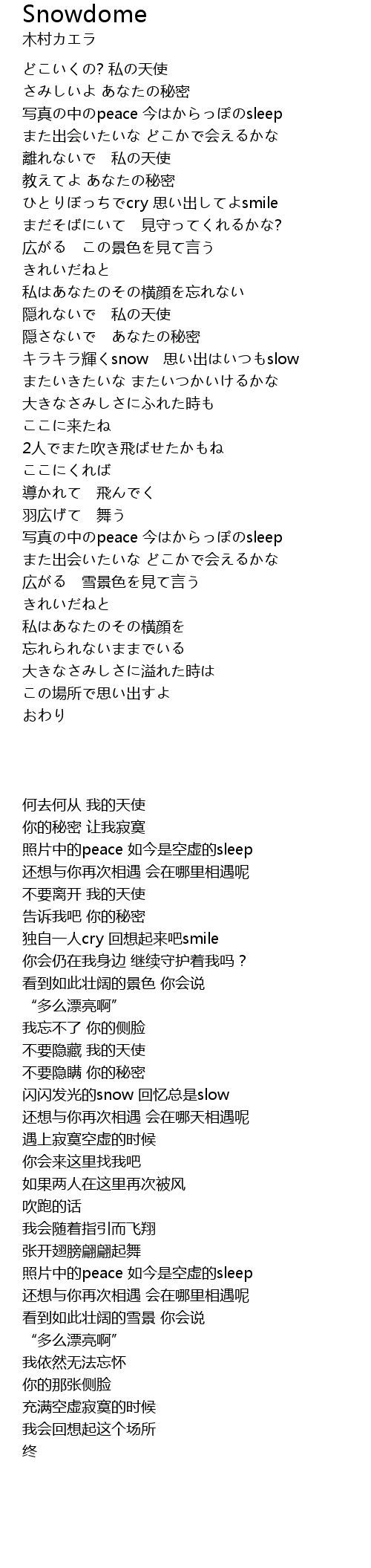 | [02:03.57] | キラキラ輝くsnow 思い出はいつもslow |