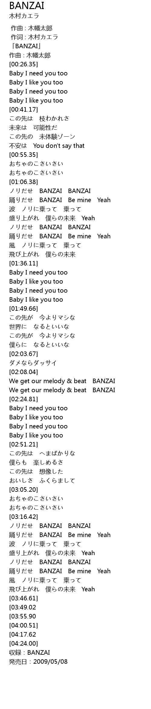 | [03:33.17] | BANZAI BANZAI |