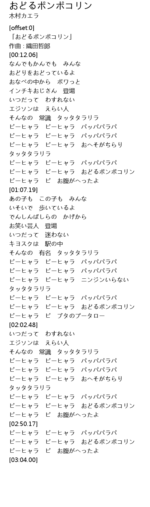 ピーヒャラ ピーヒャラ おどるポンポコリン |