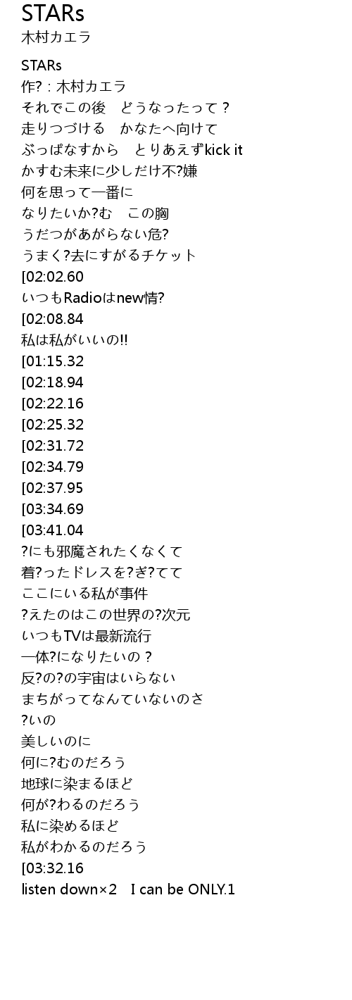 | [03:52.41] | listen down×2 I can be ONLY.1 |