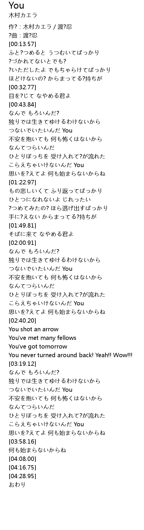| [00:05.57] | 作?:木村カエラ/渡?忍 |