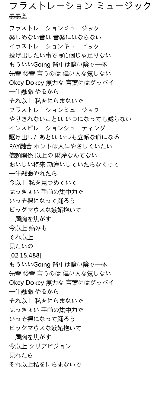 | [03:24.421] | ビッグマウスな嫉妬抱いて |