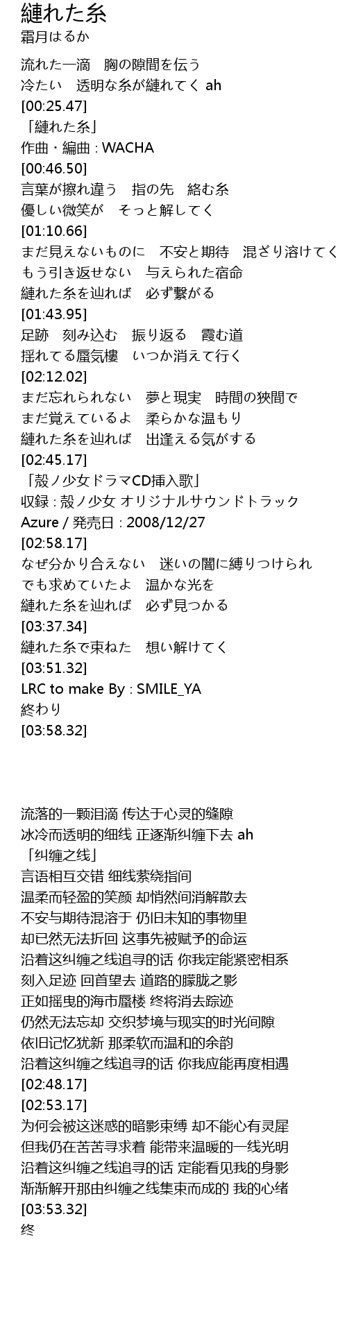 | [00:33.30] | 「縺れた糸」 |