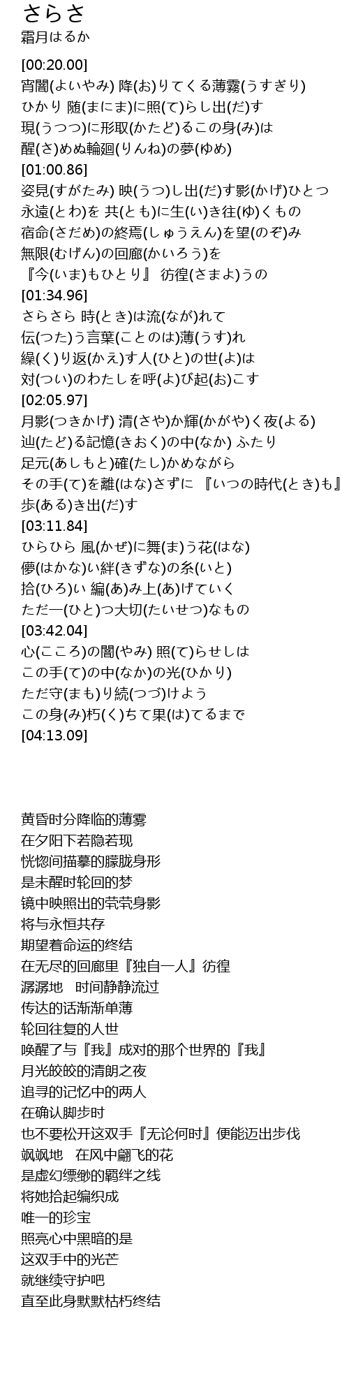 | [00:53.97] | 醒(さ)めぬ輪廻(りんね)の夢(ゆめ) |