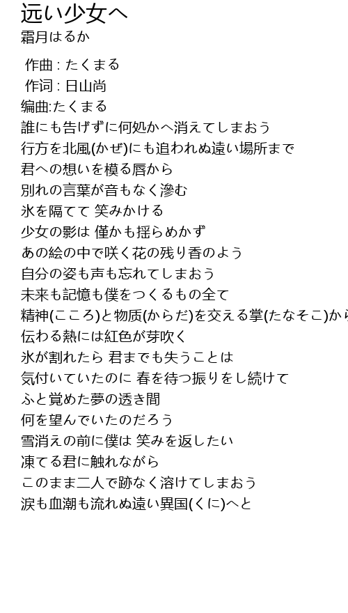 | [00:37.97] | 行方を北風(かぜ)にも追われぬ遠い場所まで |