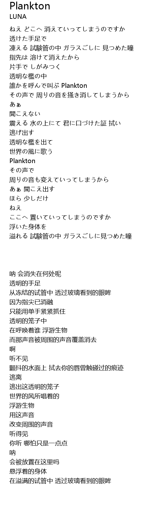 | [01:47.37] | 誰かを呼んで叫ぶ Plankton |