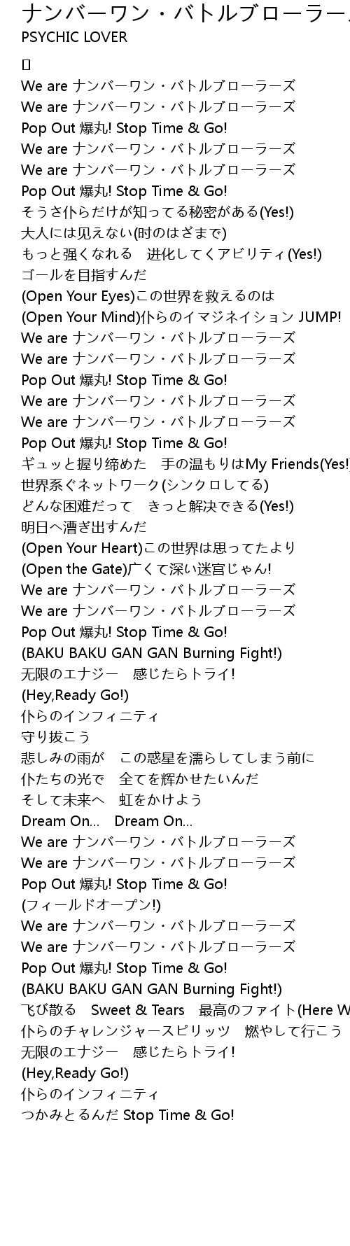 | Song | ナンバーワン・バトルブローラーズ |