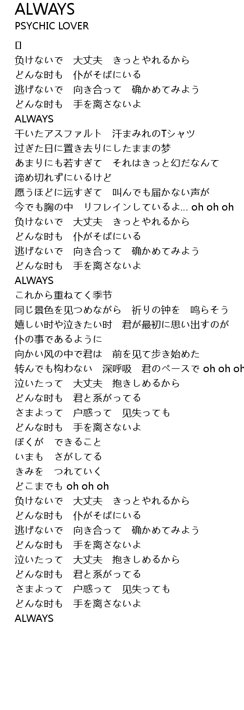 | 转んでも构わない 深呼吸 君のペースで oh oh oh | |