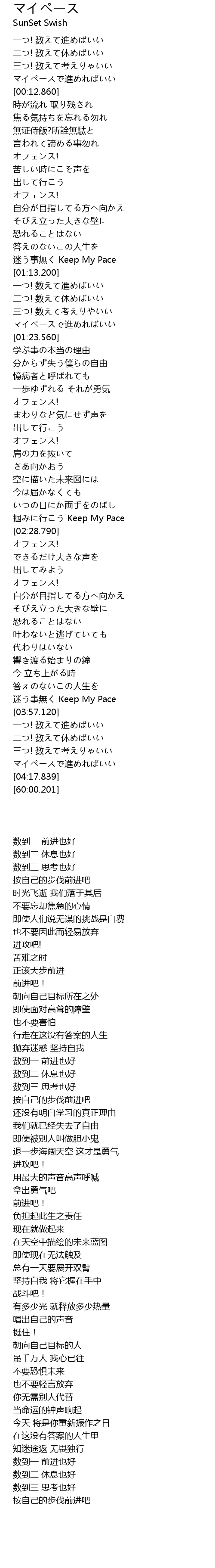 | [03:50.099] | 迷う事無く Keep My Pace |