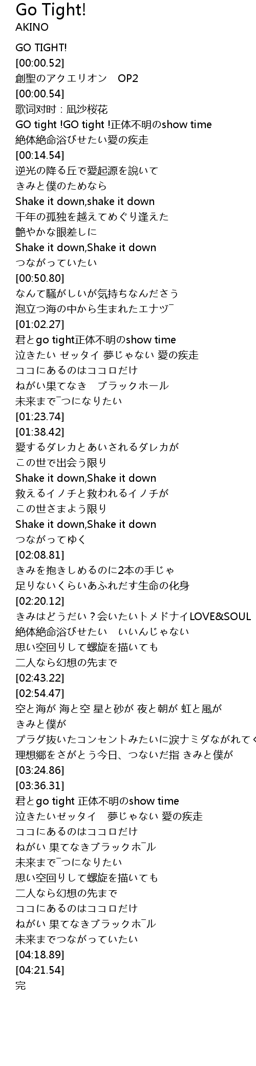 | [00:00.51] | GO TIGHT! |