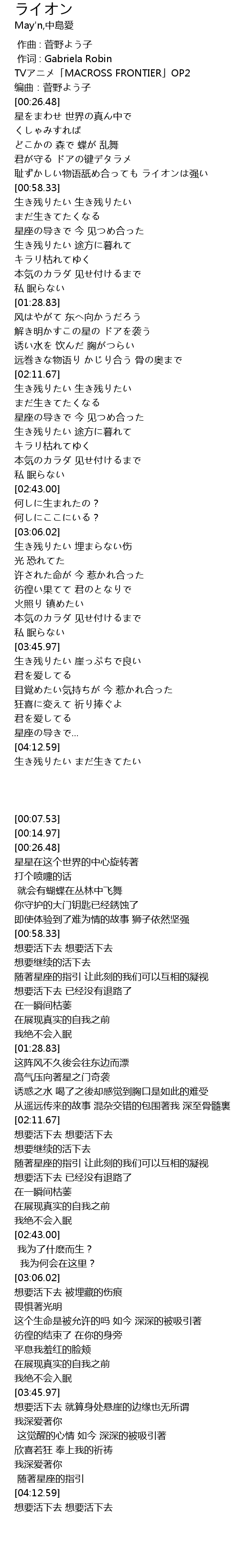 | [02:25.29] | 生き残りたい 途方に暮れて |
