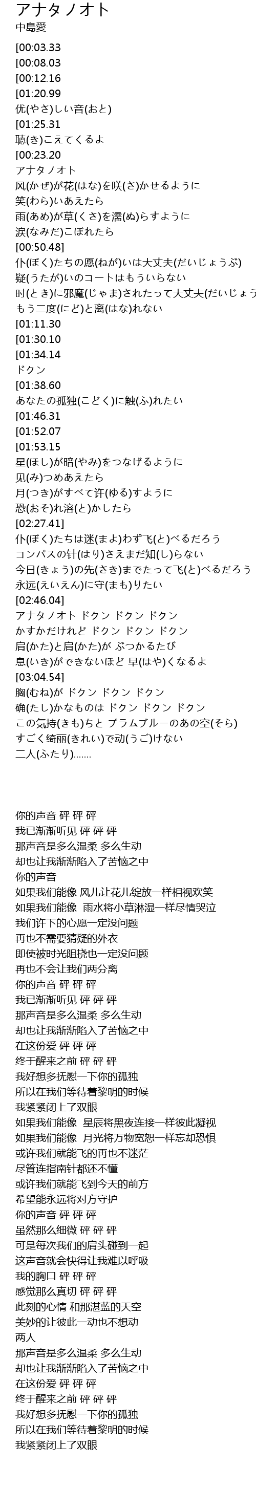 | [02:46.19] | アナタノオト ドクン ドクン ドクン |