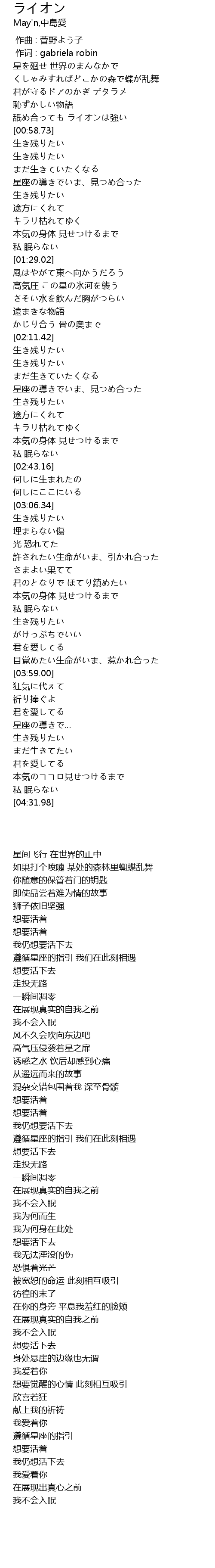 | [00:51.82] | 舐め合っても ライオンは強い |