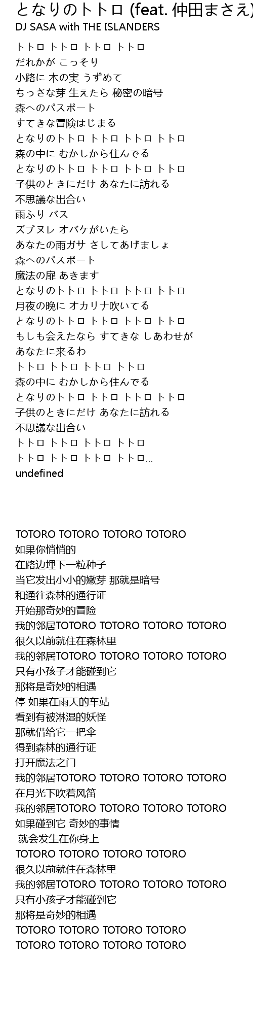 | [00:16.33] | トトロ トトロ トトロ トトロ |