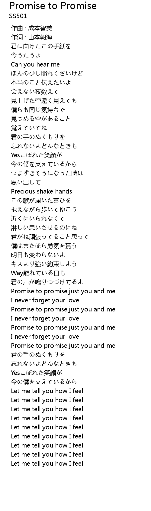| [03:34.777] | Promise to promise just you and me |