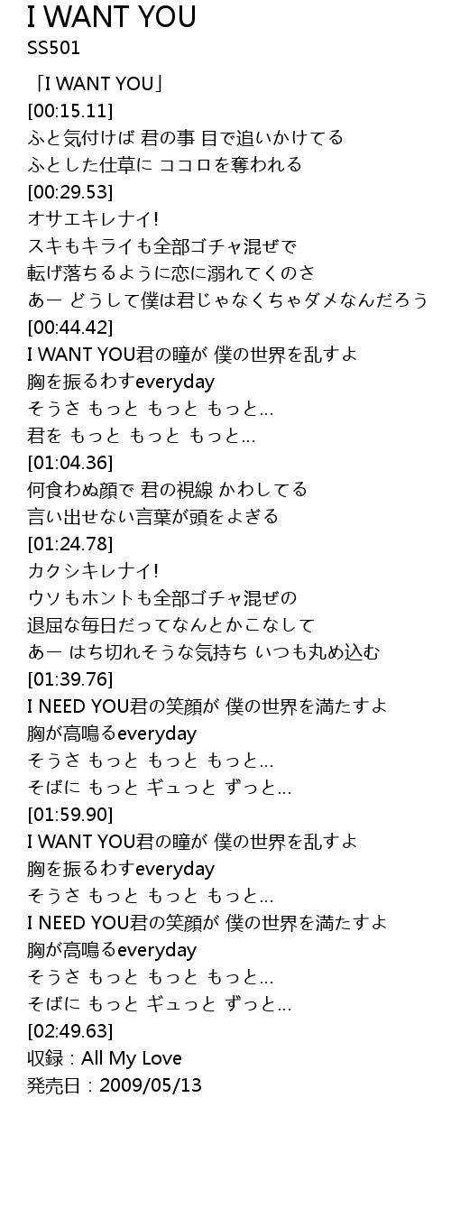 | [00:01.11] | 「I WANT YOU」 |