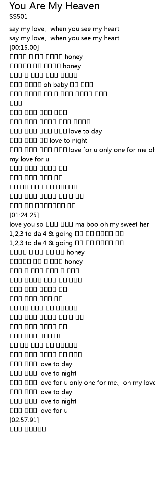 | [00:50.93] | 사랑해 사랑해 사랑해 사랑해 love to day |
