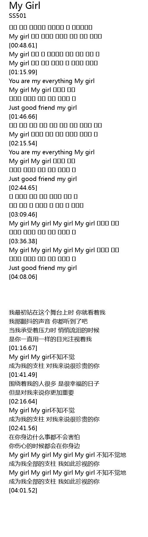 | [03:36.71] | My girl My girl My girl My girl 어느새 내겐 |