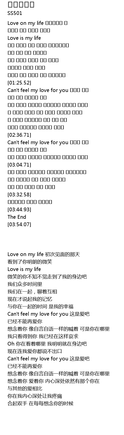 | [02:38.55] | Can't feel my love for you 사랑인 거죠 |