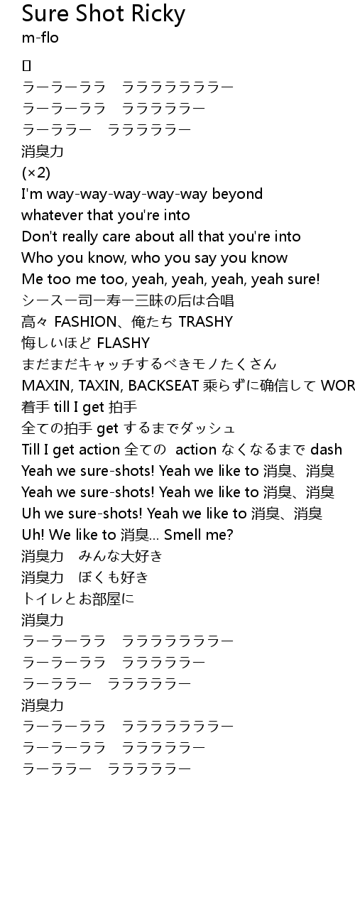 | Yeah we sure-shots! Yeah we like to 消臭、消臭 | |