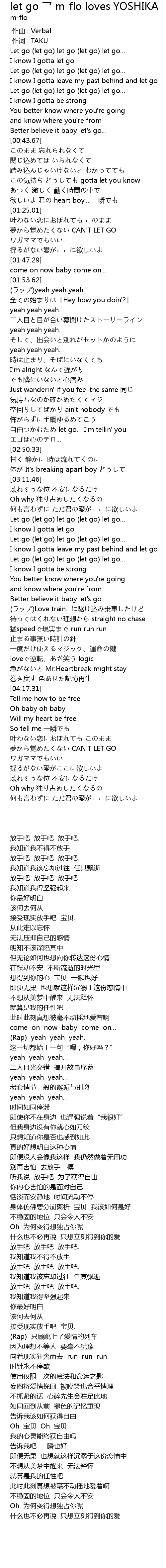 | [03:34.14] | Let go (let go) let go (let go) let go… |