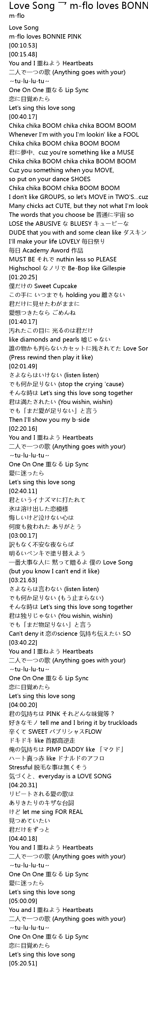 | Song | Love Song 乛 m-flo loves BONNIE PINK |