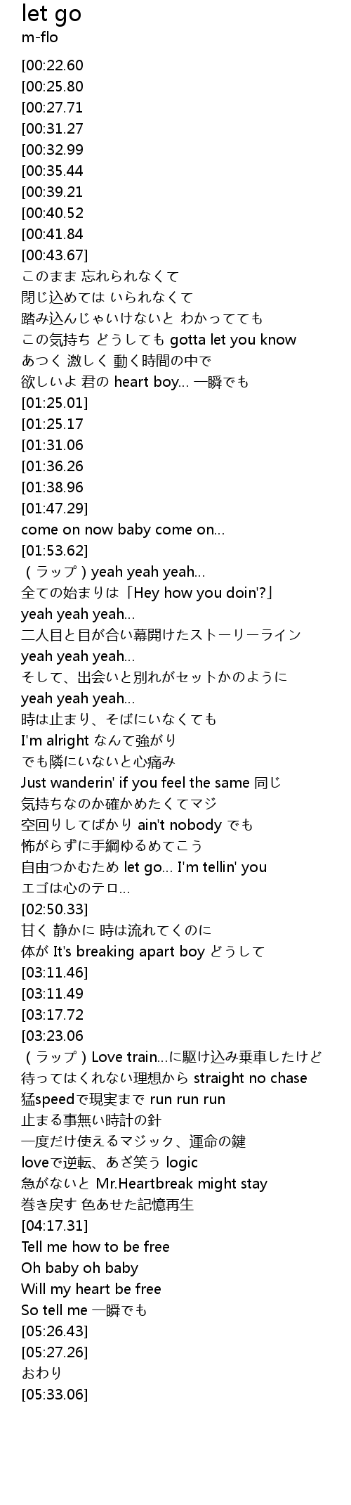 | [03:34.14][00:22.60] | Let go let go let go let go let go |