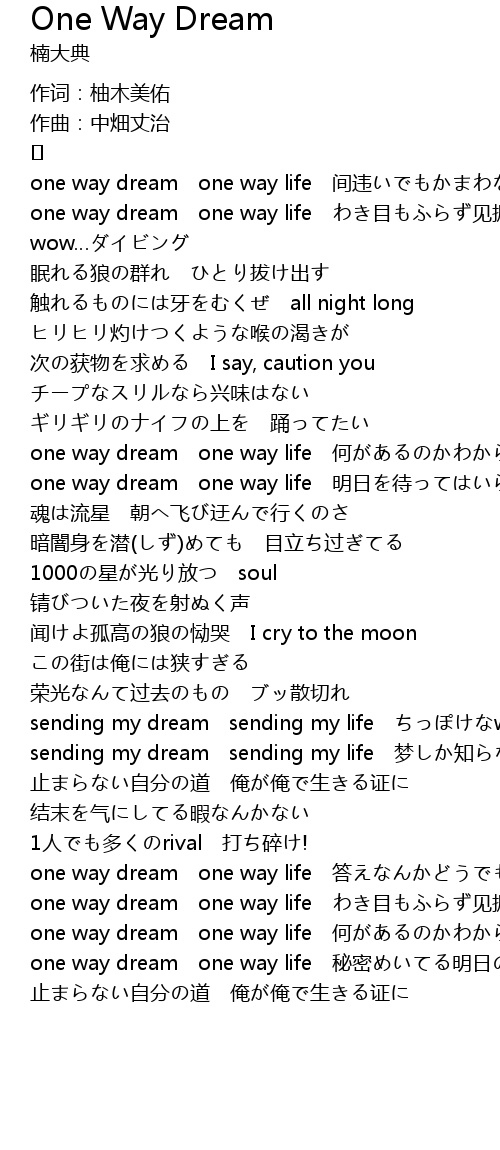 | one way dream one way life 间违いでもかまわない yeah! | |