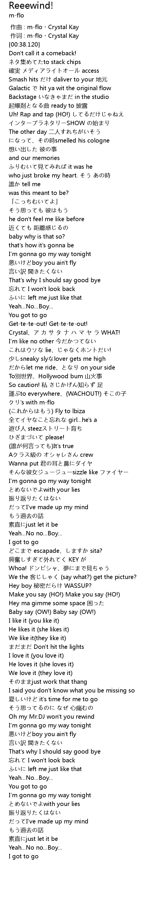 | [00:01.000] | 作词 : m-flo・Crystal Kay |