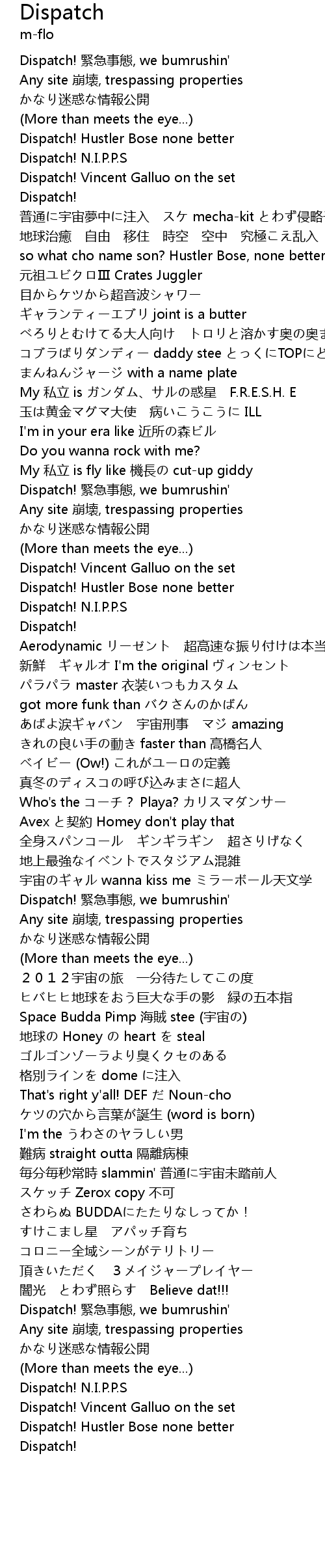 | Dispatch! jǐn jí shì tài, we bumrushin' | |