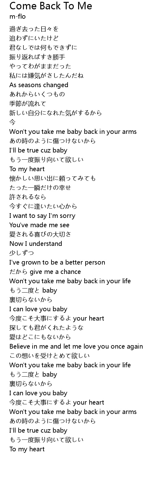| [01:04.700] | Won't you take me baby back in your arms |