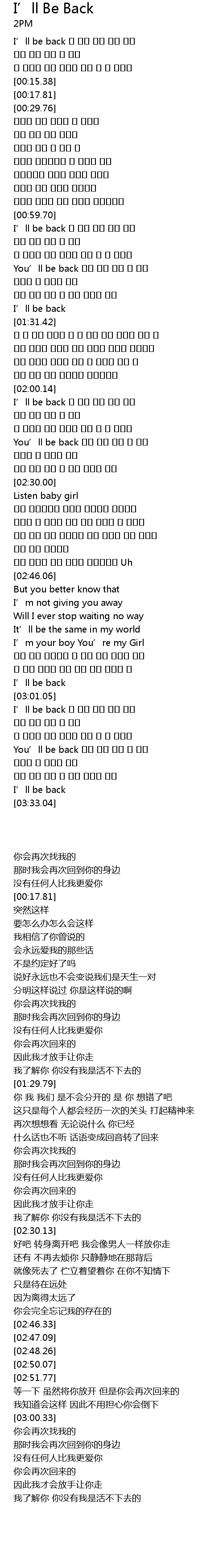 | [00:00.96] | I’ll be back 넌 다시 나를 찾을 거야 |