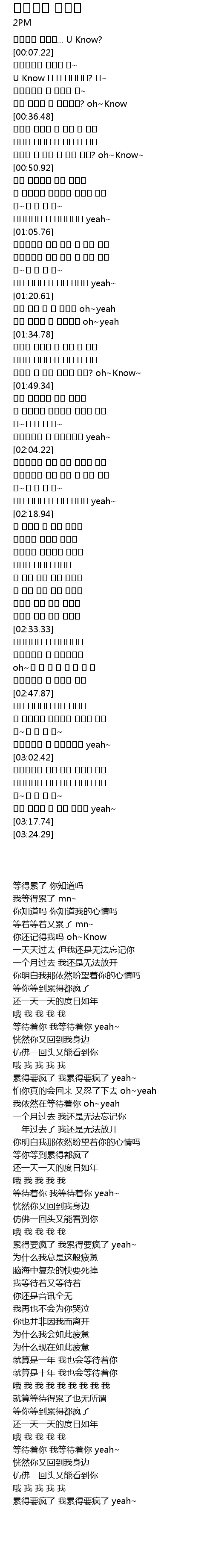 | [00:02.70] | 기다리다 지친다... U Know? |